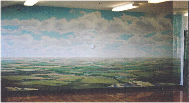This mural and Aspen Grove were painted at opposite ends of an employees' aerobics exercise room in the Nortel assembly plant. The murals were designed as relief for the eye and mind of the exerciser.