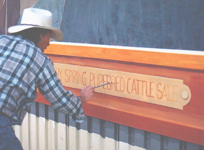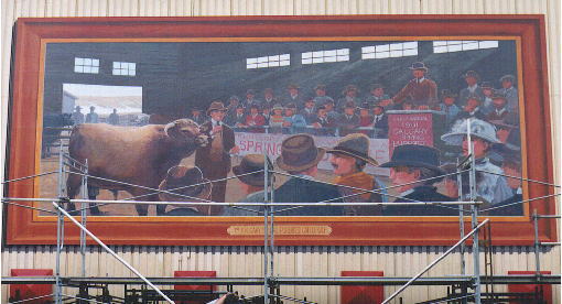 This Mural was commissioned by the Calgary Exhibition and Stampede through open competition in the year 2000 to commemorate the 100th Anniversary of Calgary's famous livestock auction. |