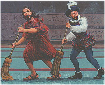 The Last End is the second of two murals commissioned for the Red Deer Curling Rink . The subject of the murals is from the W.O. Mitchell story of the same name, well known on the prairies, particularly among curling enthusiasts. |