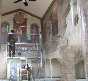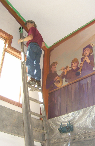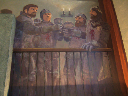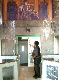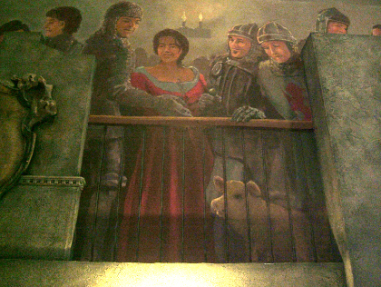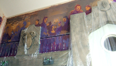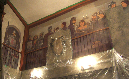 ![]() with a mural on a medieval theme. As muralists set to work shadows of figures appear |